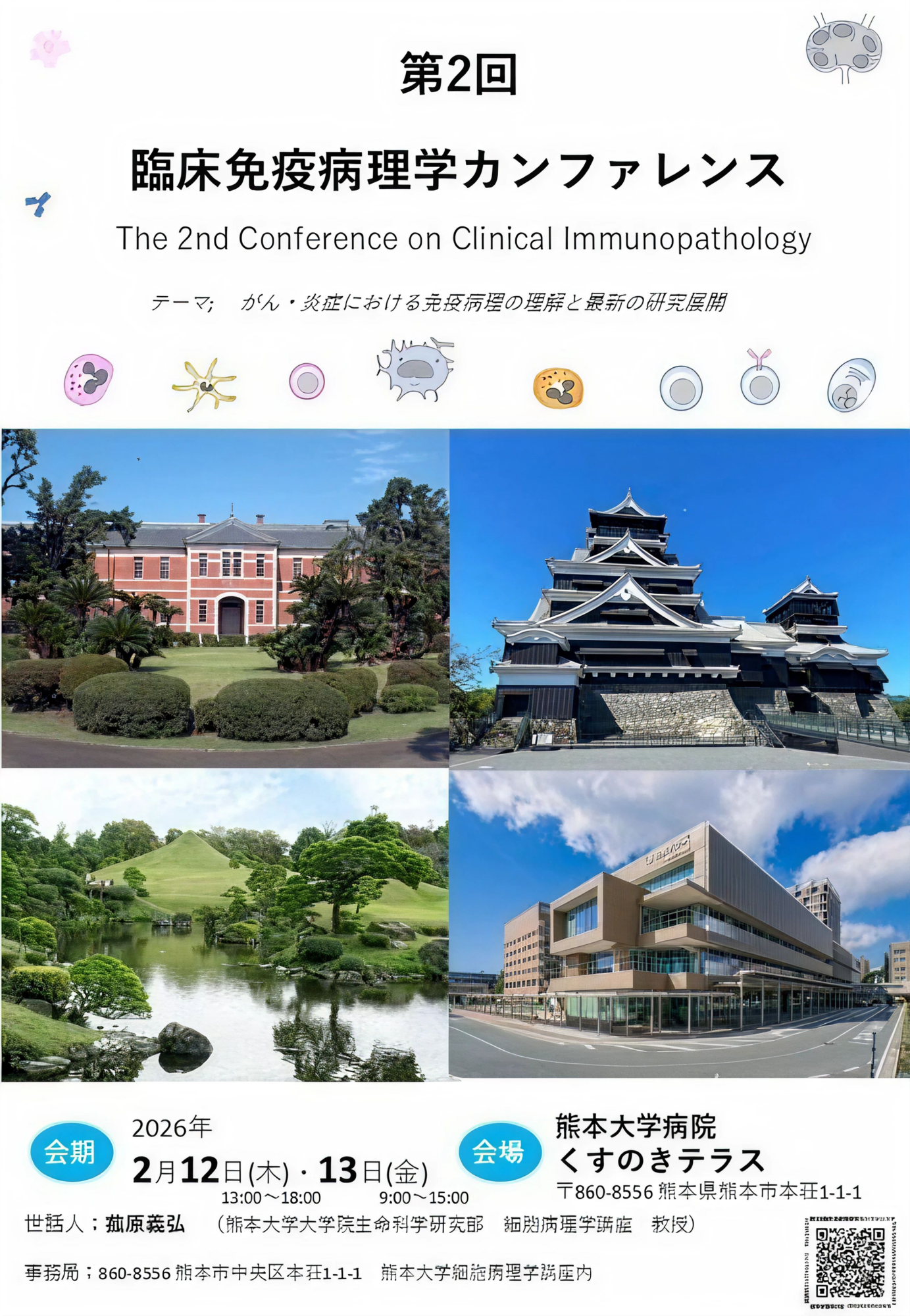 | 開催場所 :くすのきテラス (熊本市中央区本荘1-1-1 熊本大学病院敷地内) 開催期間 :2026年2月12日(木)~ 13日(金) 開催形式 :基本的には対面形式 (※交通事情などによりオンライン併用の可能性あり) 公式サイト:10月頃に公開予定 |